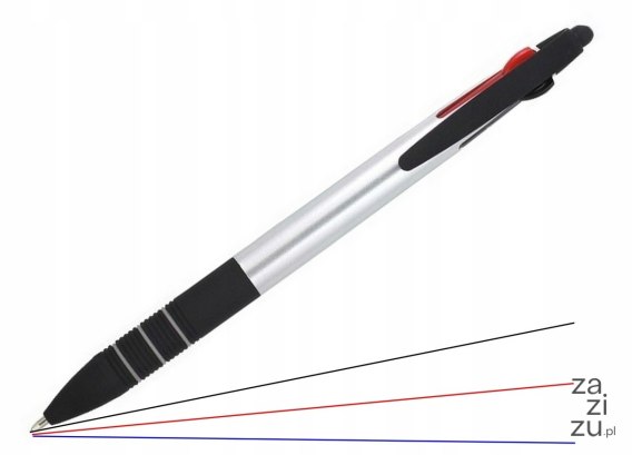 Długopis posiada niezawodny, suwany mechanizm uruchamiania wkładów ( czarny, czerwony, niebieski ). Dla zapewnienia pewnego chwytu długopis w przedniej części pokryto poprzecznie profilowaną gumą. Korpus wykonano z wysokiej jakości tworzywa sztucznego. Na zakończeniu długopisu, powyżej klipu zamocowano użyteczną, miękką końcówkę do smartfona lub tabletu.