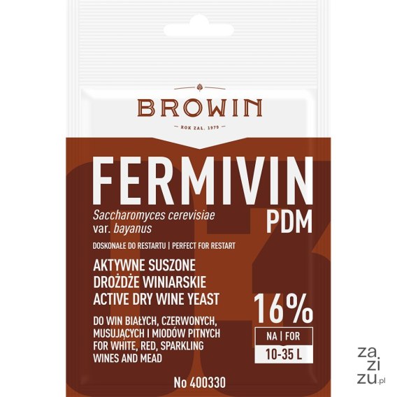 - Do win białych, czerwonych, musujących i miodów pitnych - Fermivin PDM to uniwersalne drożdże do wszystkich rodzajów win, również musujących. Ze względu na odporność na wysokie stężenie cukrów, świetnie sprawdzą się również do miodów pitnych.